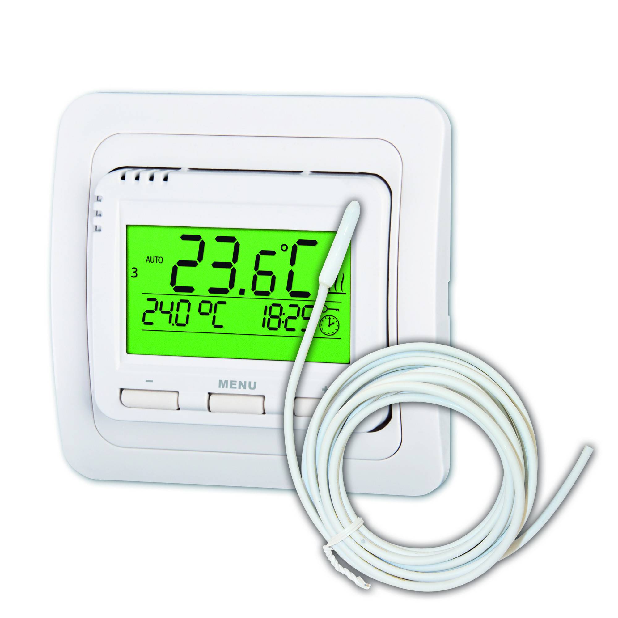 REGULIERUNGREGULIERUNG – pünktliche elektronische Regulierung ermöglicht in jedem Raum sehr flexibel auf die Entwicklung der Temperatur im Raum zu reagieren, ohne überflüssige Akkumulation und Überheizung sowie bei den Bodenheizsystemen als auch Wasserheizsystemen. Die Sonne wärmt oft die Wohnräume während der Heizsaison ohne eingeschaltete Heizung aus, während die Infra-Paneele mit der digitalen Regulierung sehr schnell reagieren, die akkumulierten Wassersysteme und der Beton im Boden ständig die Wärme abgeben, auch wenn es nicht mehr nötig ist und der Raum ist überhitzt. Die Thermostate sind im Angebot vom tschechischen Hersteller ELKTROBOCK.